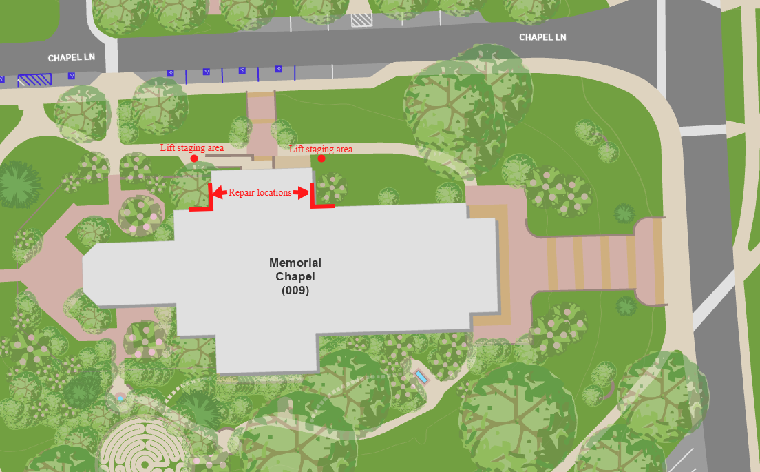| Memorial Chapel - Lift Work, Gutter Repair Work |